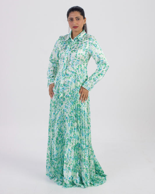 Sage Green Flowy Pleated Maxi Dress - Refined Modest Elegance | Virtuous24