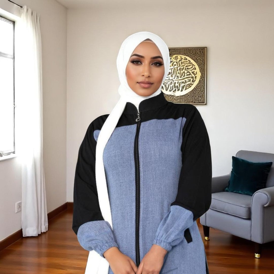 The Denim Solace Maxi combines soft premium denim with a flowing tiered silhouette for effortless modest style. A timeless button-down maxi dress perfect for everyday wear or chic evenings.
